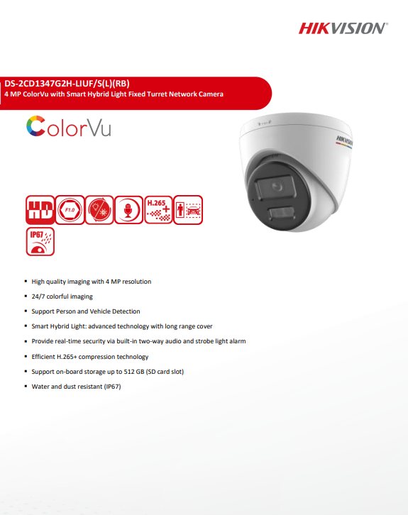 4 MP ColorVu with Smart Hybrid Light Fixed Turret Network Camera
