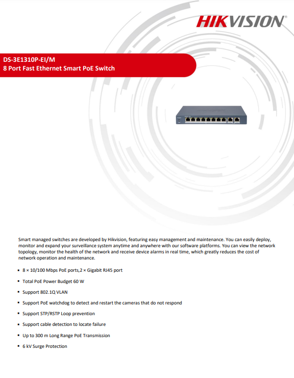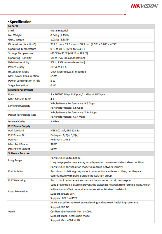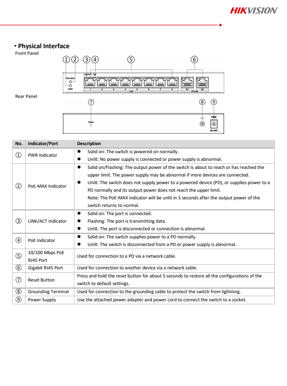 8 × 10/100 Mbps PoE ports,2 × Gigabit RJ45 port
