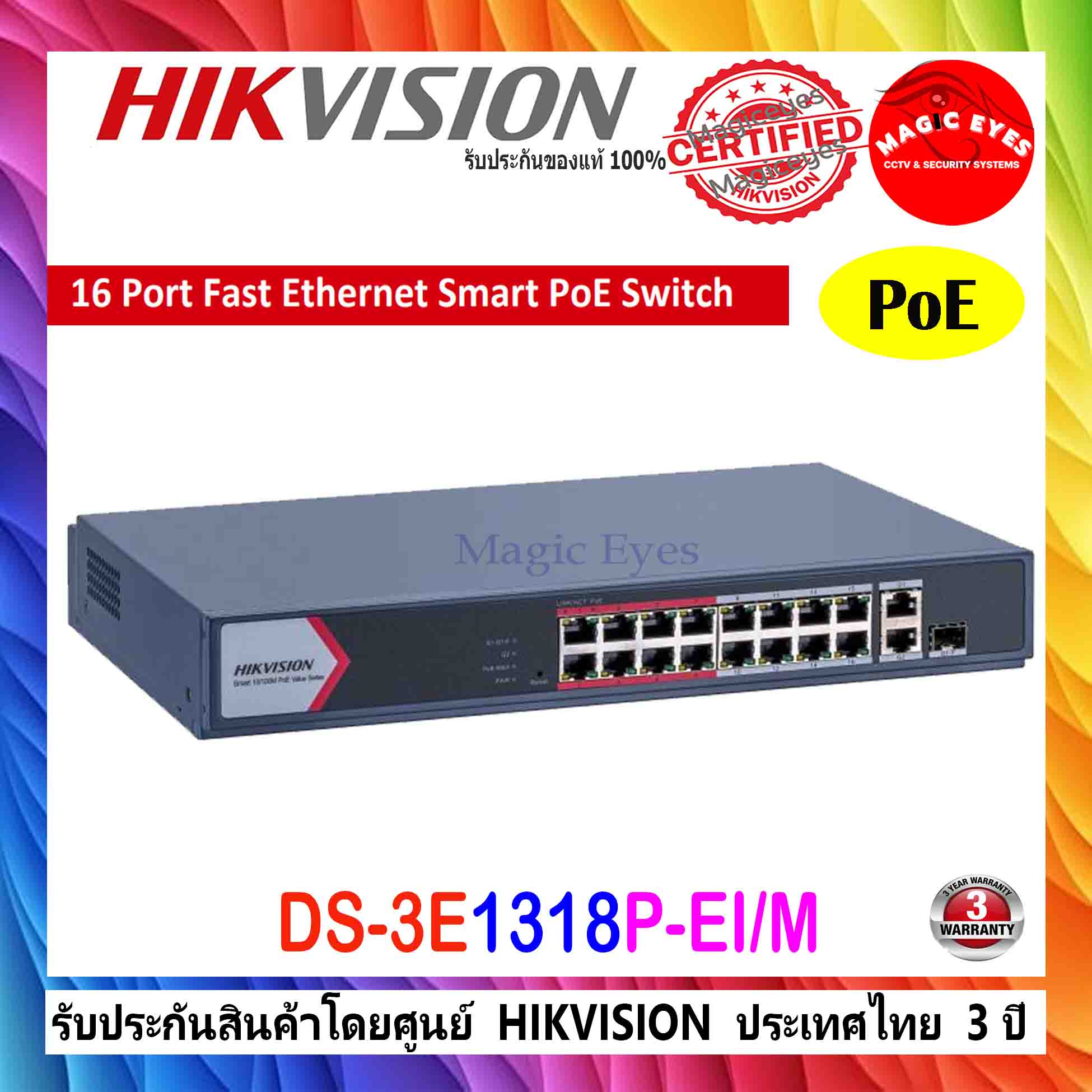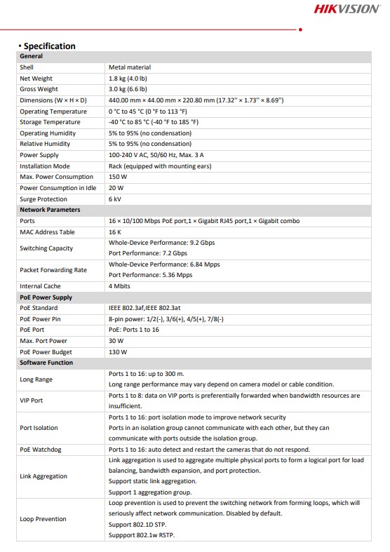 พอร์ต PoE 16 × 10/100M, พอร์ต 1 × Gigabit RJ45, 1 × Gigabit คอมโบ