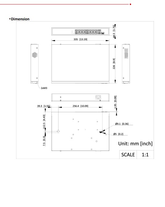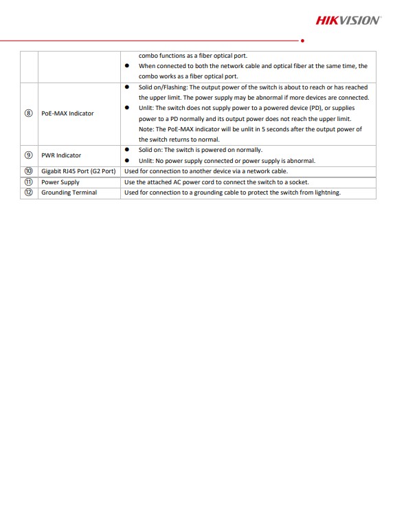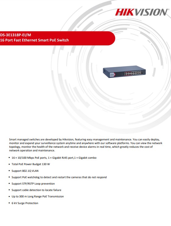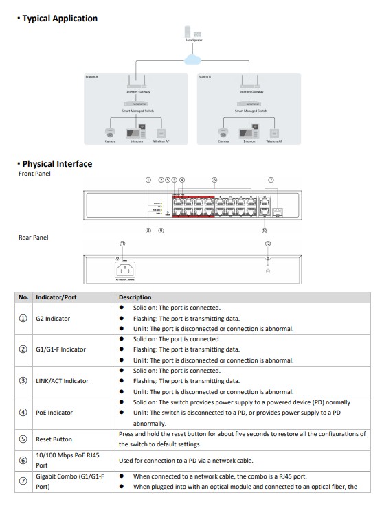 16 × 10/100M PoE ports, 1 × Gigabit RJ45 port,1 × Gigabit combo