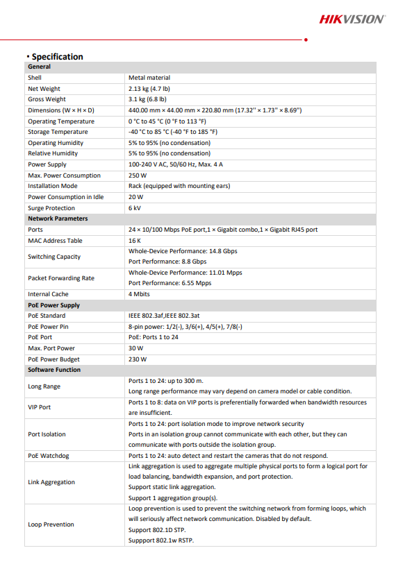 24 × 10/100M PoE ports, 1 × Gigabit combo,1 × Gigabit RJ45 port