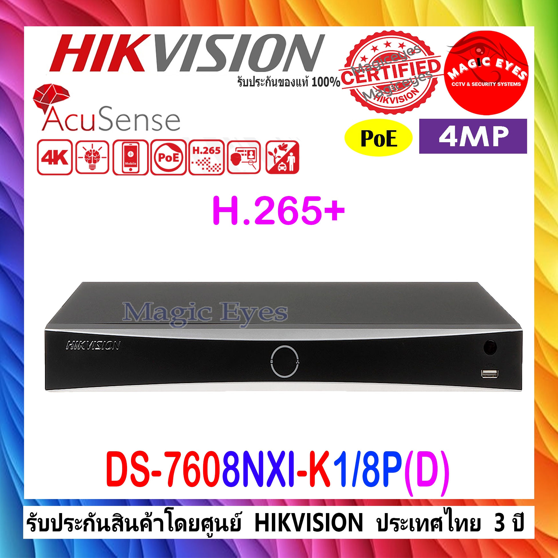 NVR AcuSense 4K ซีรีส์ K 1U PoE 8 ช่อง