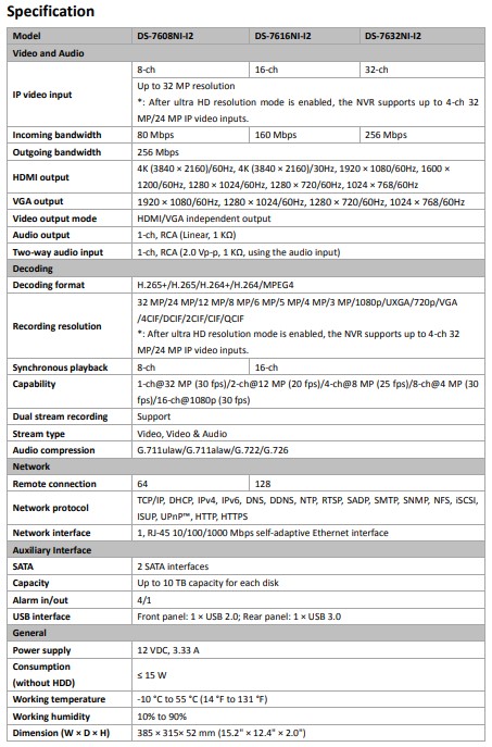 Up to 1-ch@32 MP/2-ch@12 MP/16-ch@1080p decoding capacity