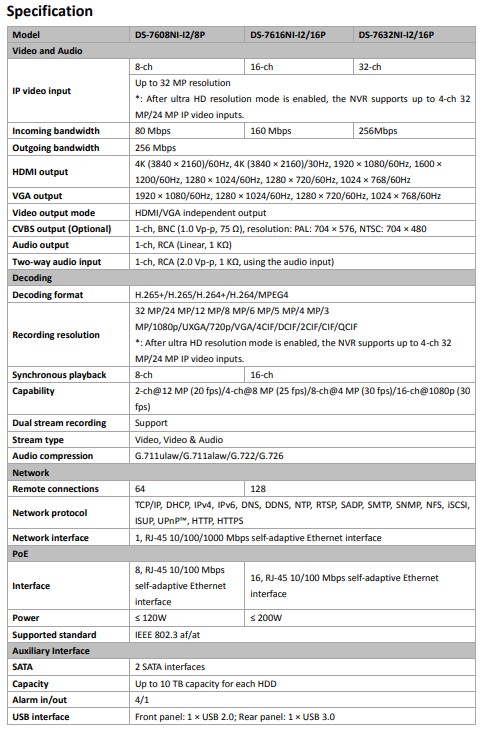 Up to 2-ch@12 MP/16-ch@1080p decoding capacity