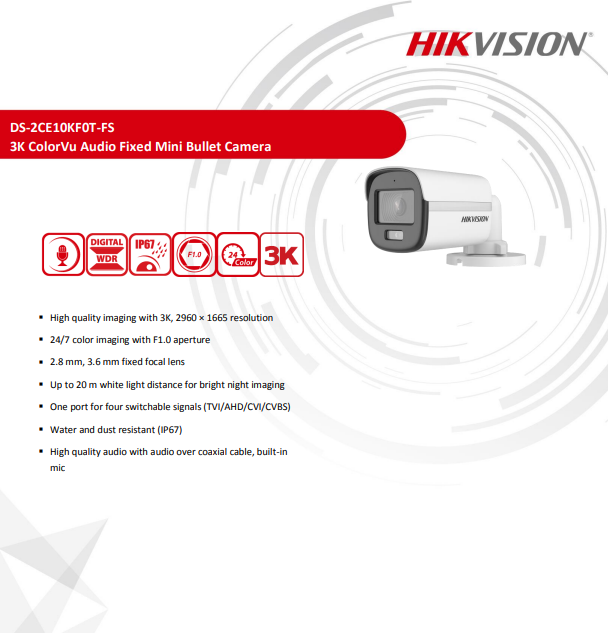 3K ColorVu Audio Fixed Bullet Camera