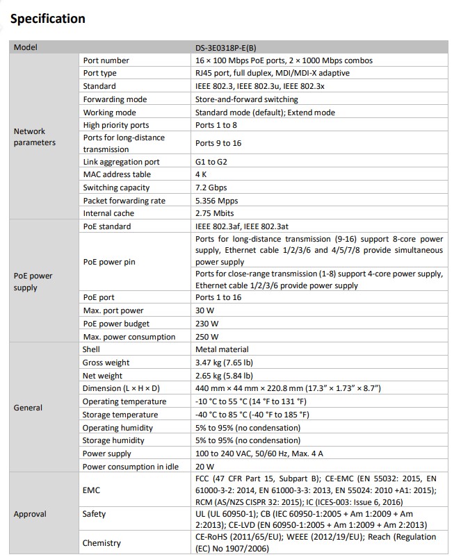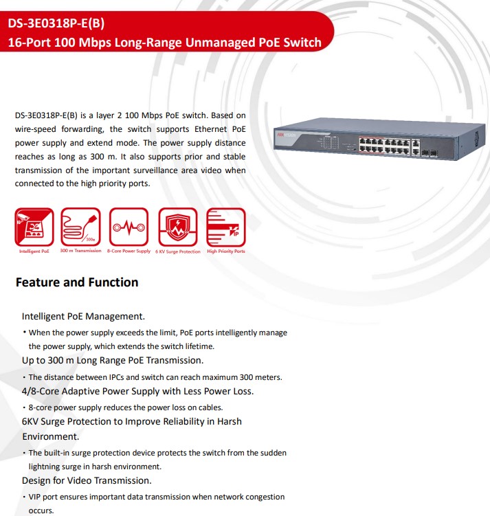 DS-3E0318P-E(B) is a layer 2 100 Mbps PoE switch. Based on
