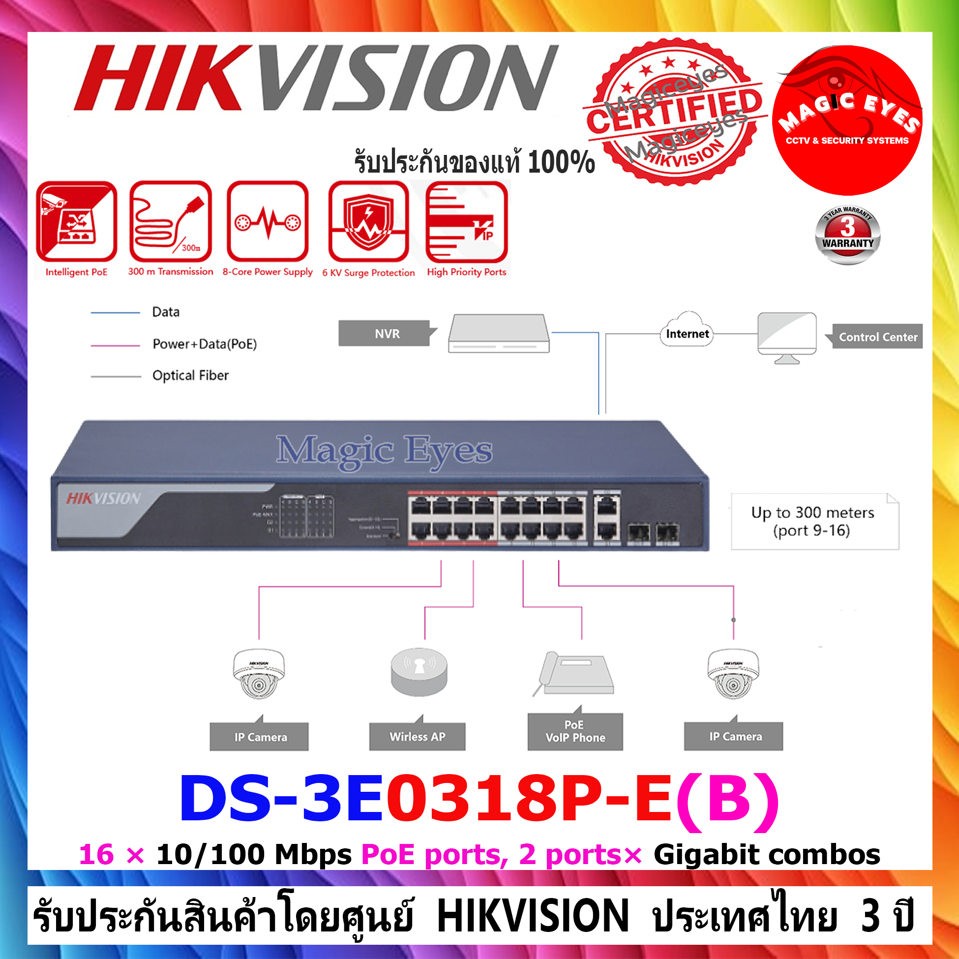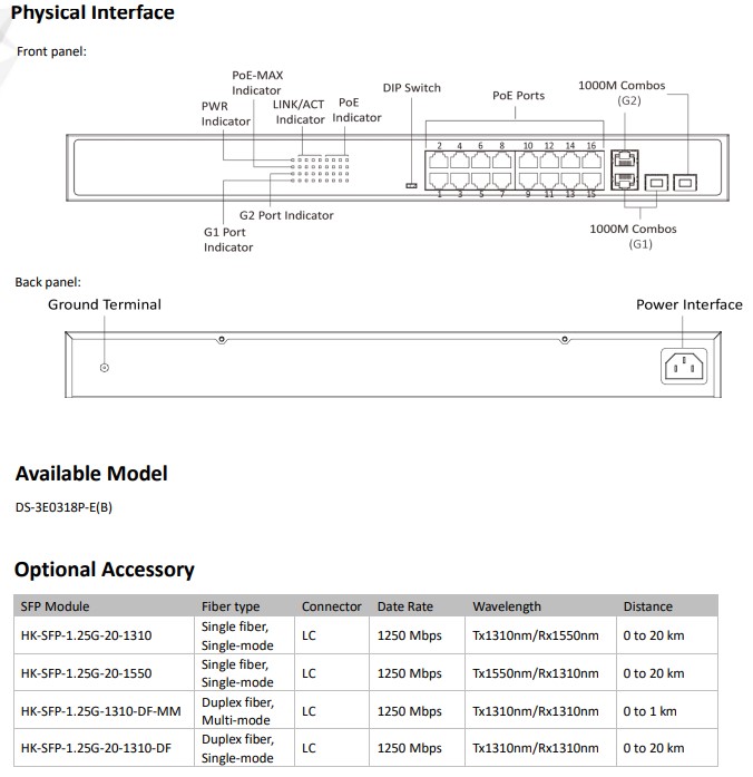 DS-3E0318P-E(B) เป็นสวิตช์ PoE เลเยอร์ 2 100 Mbps ขึ้นอยู่กับ