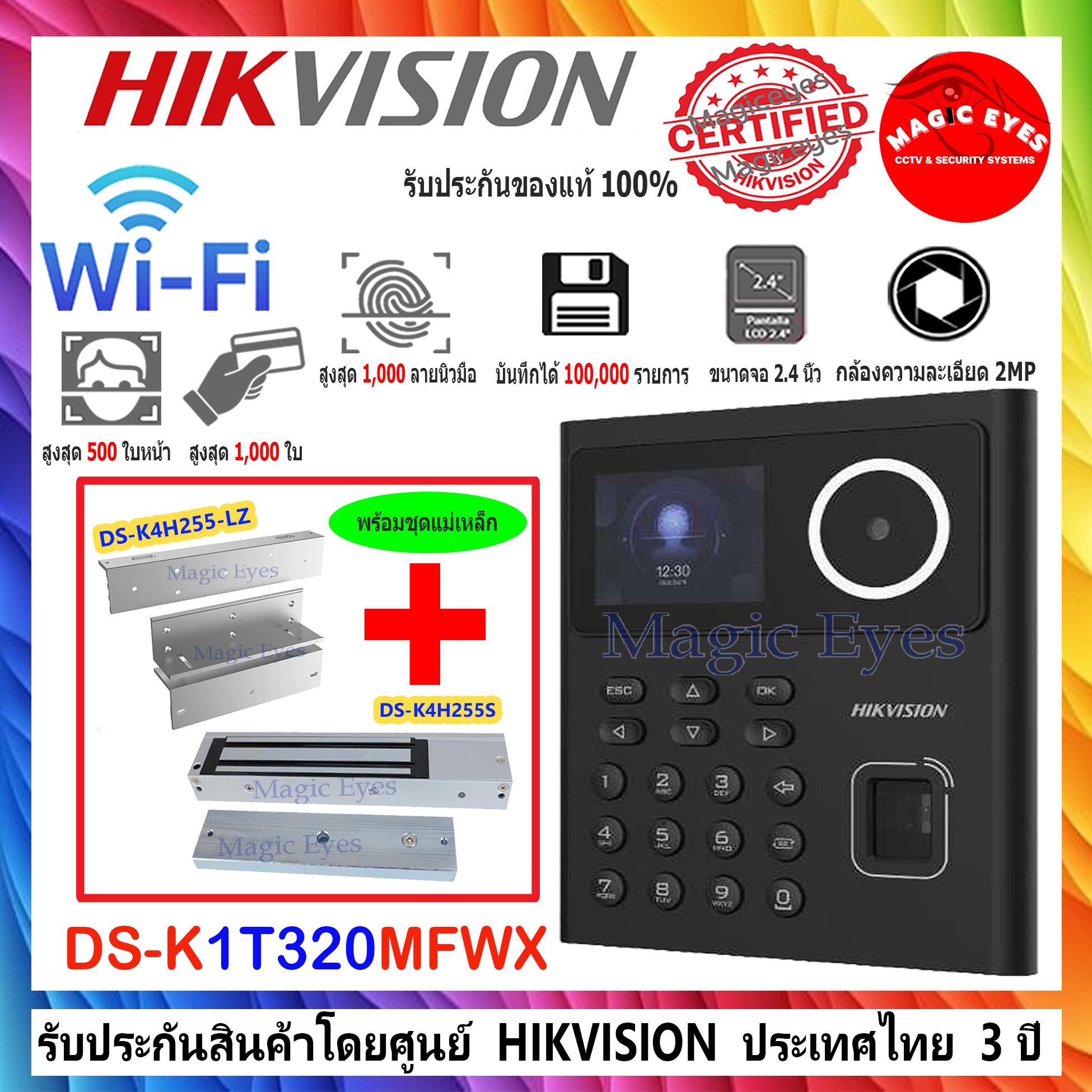 – สูงสุด 500 ใบหน้า 1,000 การ์ด 1,000 ลายนิ้วมือ และ 100,000 เหตุการณ์
