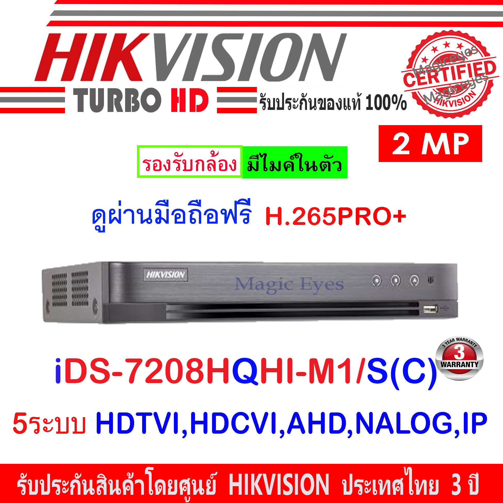 Hikvision DVR รุ่น iDS-7208HQHI-M1/S 8CH 5ระบบ