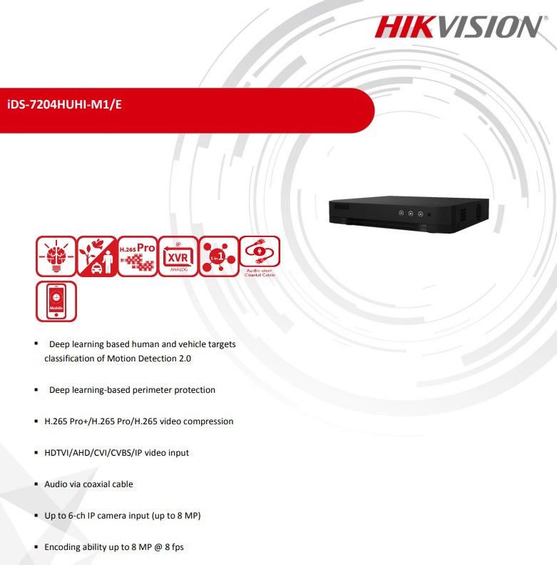 iDS-7204HUHI-M1/E(C) 4-ch 5MP 1U H.265 AcuSense DVR