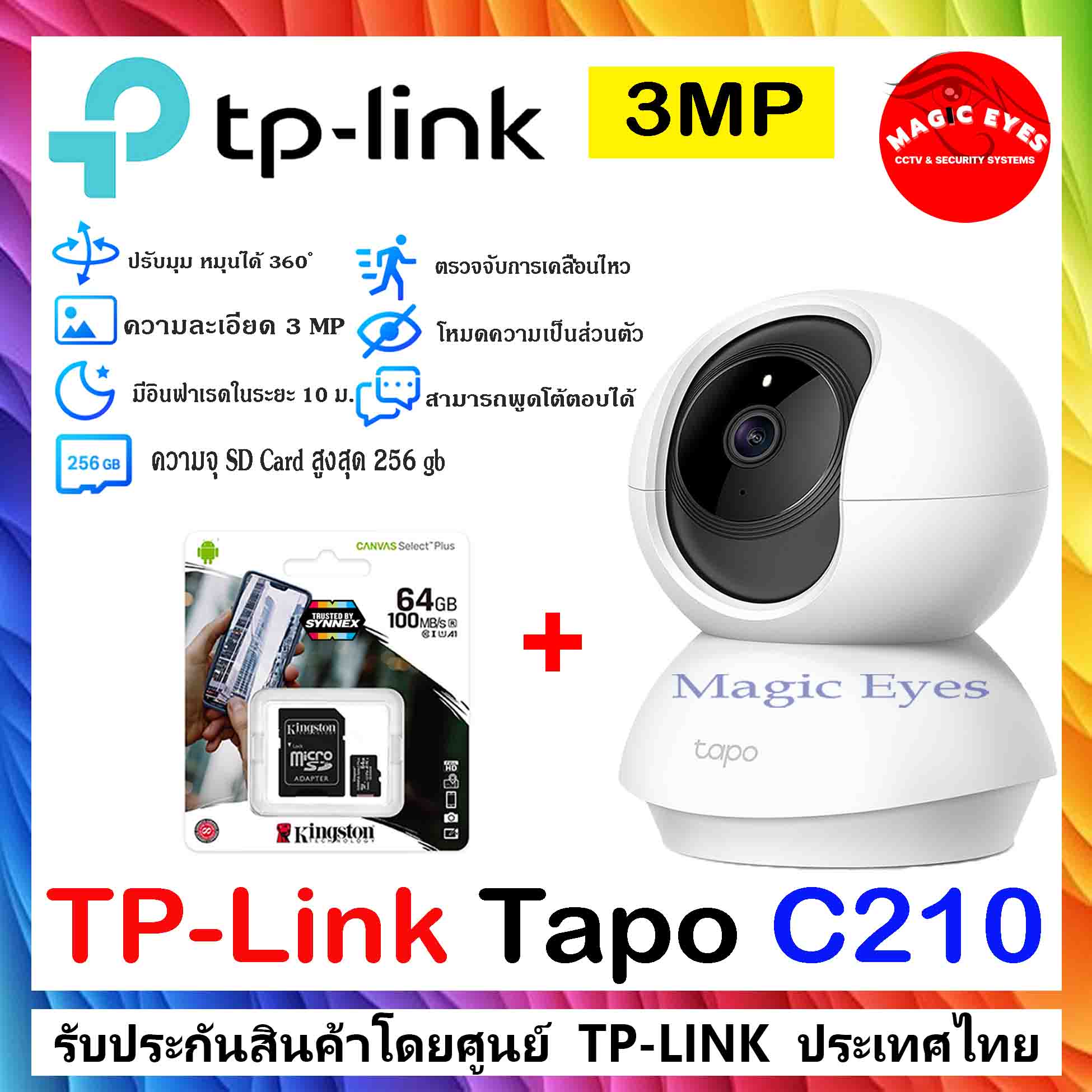 TP-LINK Tapo C210 Pan/Tilt Home Security Wi-Fi Camera +SDCard kingston 64GB